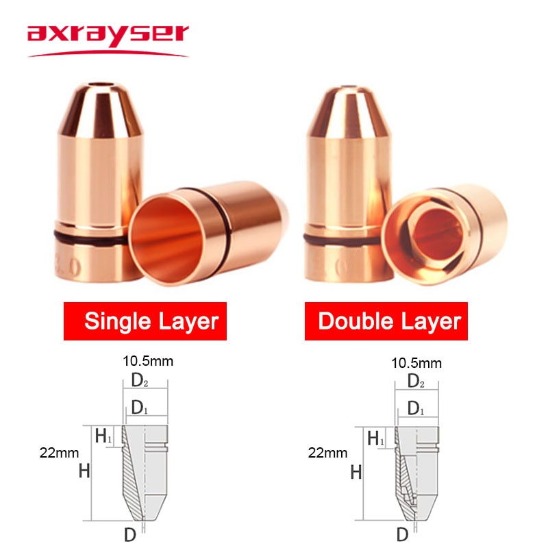 DNE Laser Nozzle CINCINNATI Lasermech Raytools Head Parts With Nut Base Bullet Shape Single Double Layer 1.2 1.5 Pure Copper