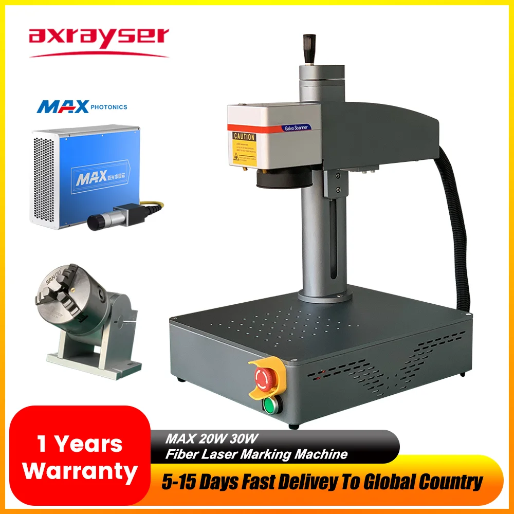 Fiber Laser Marking Machine 20W 30W with 80mm Rotary MAX Laser Source Engraving Metal Plastic Glass Wood Jewellery