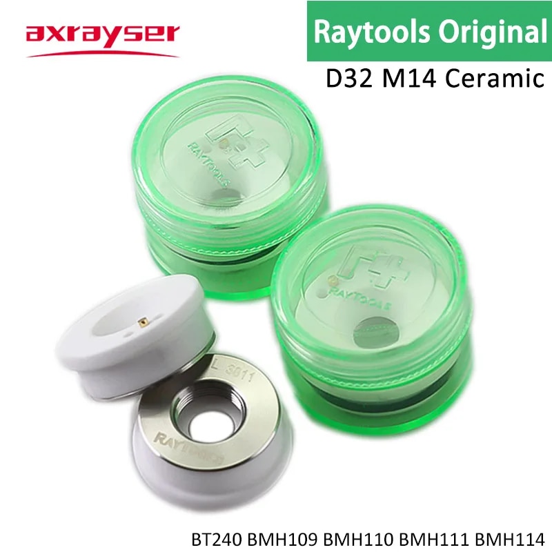 Raytools Original Laser Ceramic Body Nozzle Holder Ring Dia32mm M14 Green Box for Fiber Cutting Head BT230 BT240 BMH110 114etc.