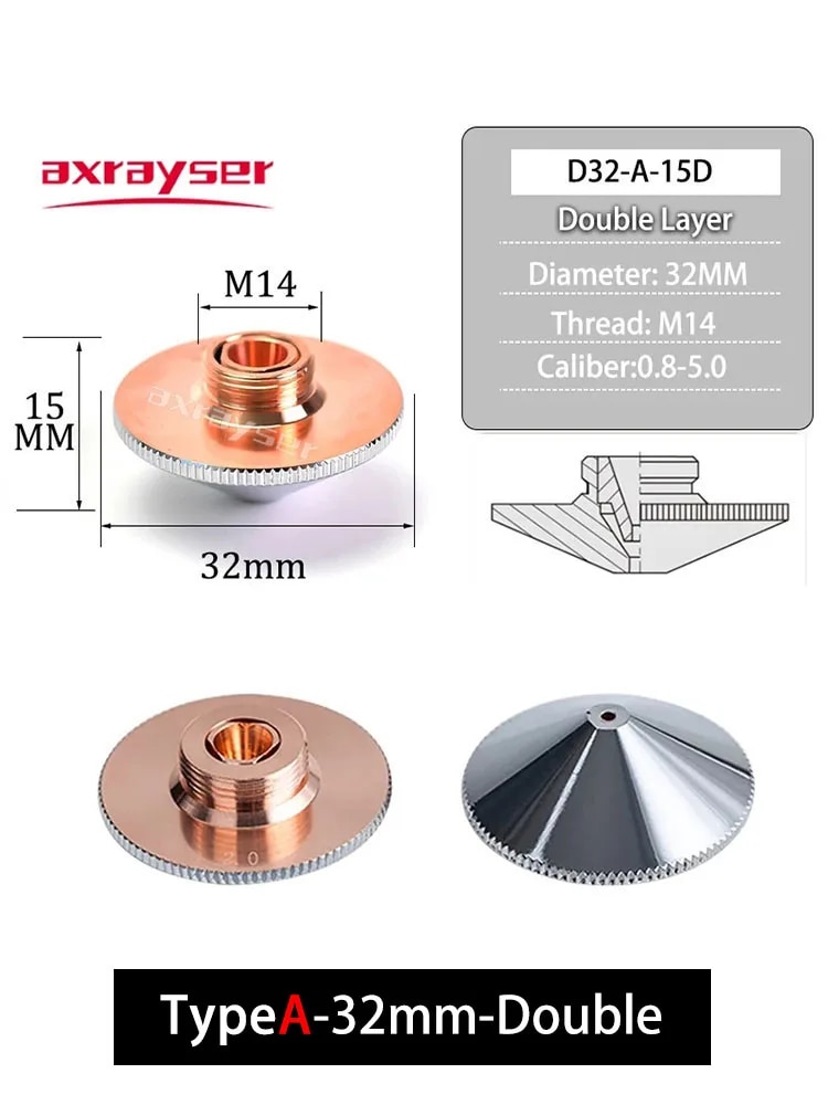 Raytools Laser Nozzles Single Double Layer Dia.32mm M14 Caliber 0.8-4.5mm for Fiber Laser Cutting Machine BT240 BM114 BM110 etc.