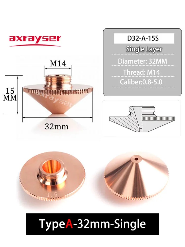 Raytools Laser Nozzles Single Double Layer Dia.32mm M14 Caliber 0.8-4.5mm for Fiber Laser Cutting Machine BT240 BM114 BM110 etc.